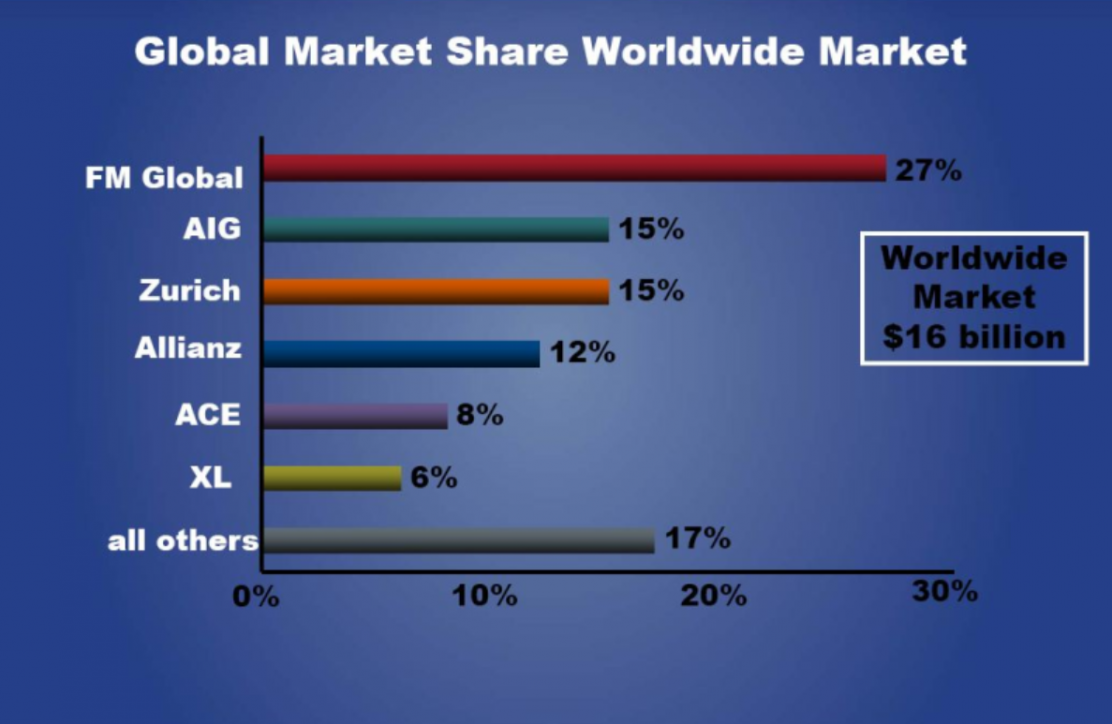 Các công ty bảo hiểm lớn trên thế giới cho bảo hiểm rủi ro tài sản như bên dưới: