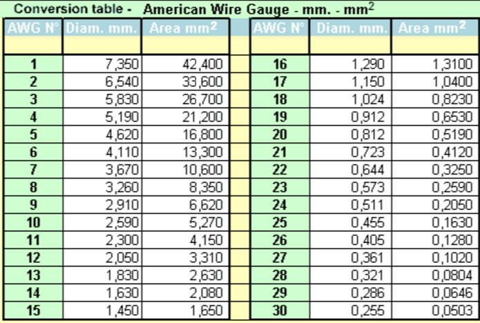 Bảng tham khảo tiết diện dây từ chuẩn AWG sang mm2.
