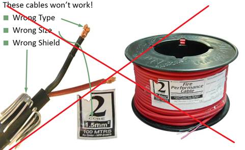 Cáp dùng cho báo cháy theo quy định là cáp xoắn đôi chống nhiễu có lớp màng chống nhiễu. Tiết diện cáp tùy theo quy định của từng hệ thống đơn vị đo lường.